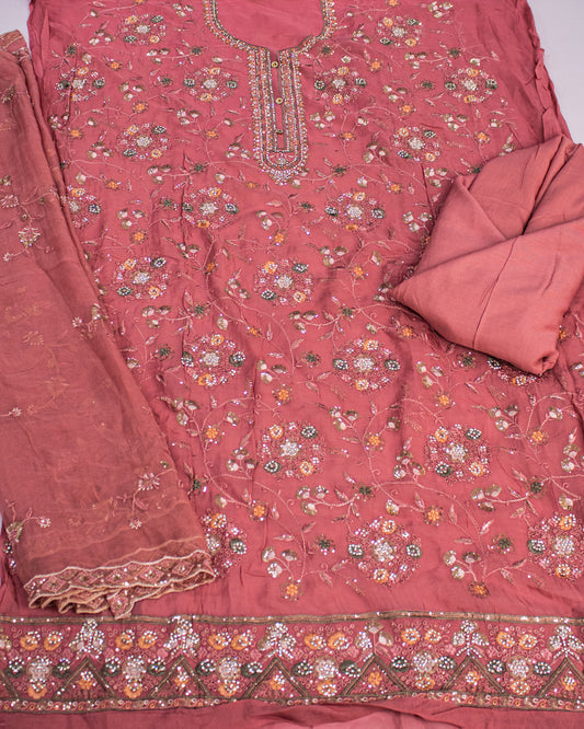 Light Red Sequence and Thread Work Salwar Suit Fabric