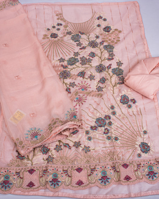 Pink Organza Zari and Embroidery Work Salwar Suit Fabric