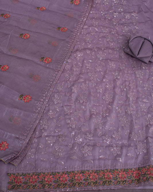 Light Purple Water Sequence Work Salwar Suit Fabric