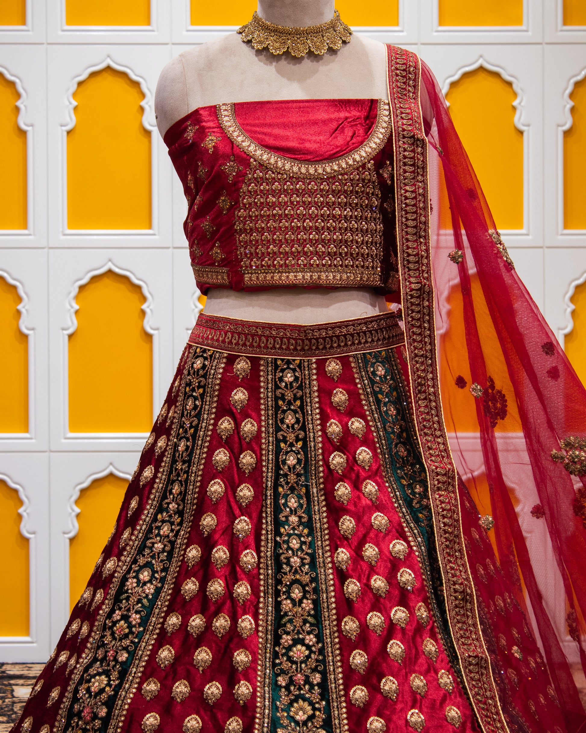 Maroon Pita Zari Work Micro Silk Bridal Lehenga Art-334